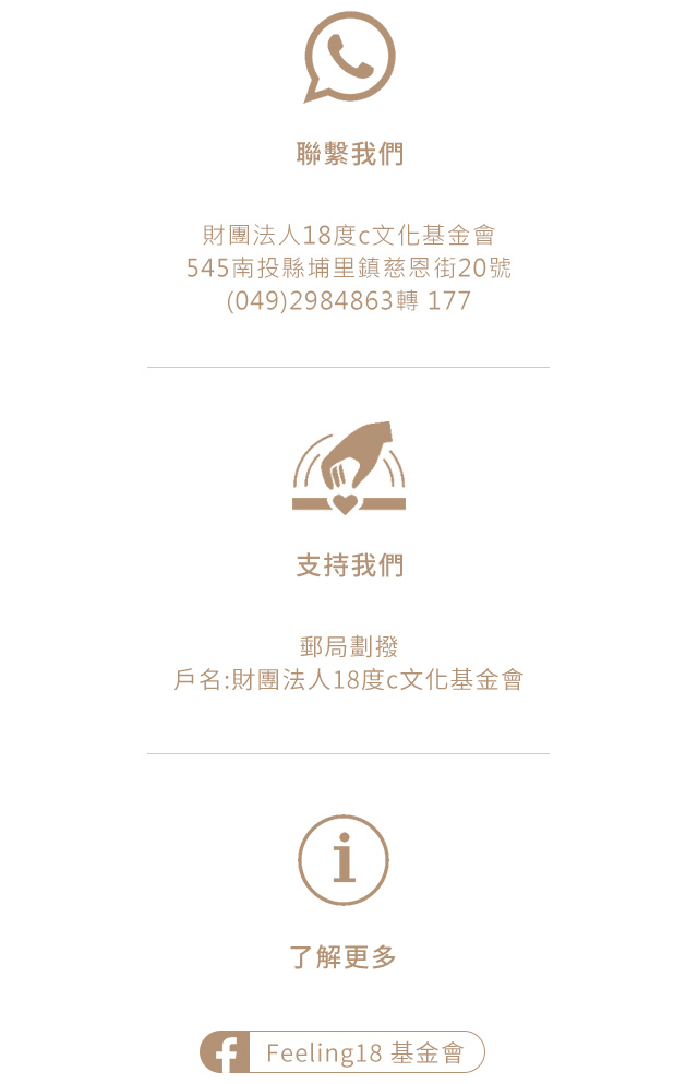2011年,秉持著茆師父「取之於社會,用之於社會」的信念,我們成立了18度C文化基金會。